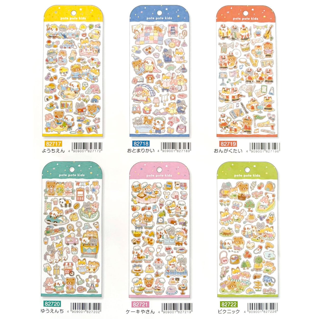 仲良しの6匹組がおりなす、日常の小さなドラマを切り取ったシールです。