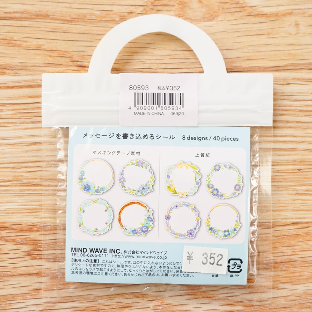 お花のリース型の書き込めるシール!