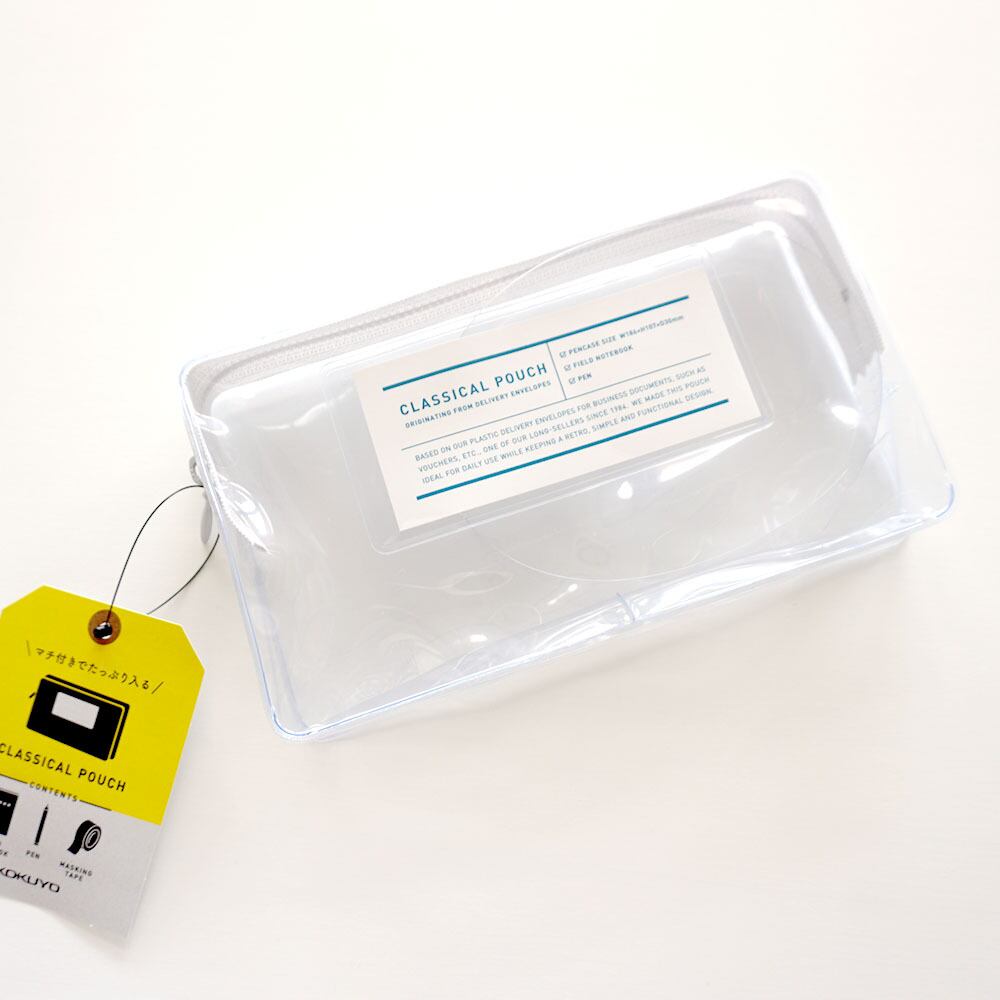 事務所や工場などで、書類を入れて往復して使用されてきた事務用連絡ケースのレトロなデザインを踏襲した、約30本のペンが入る機能的なポーチ。