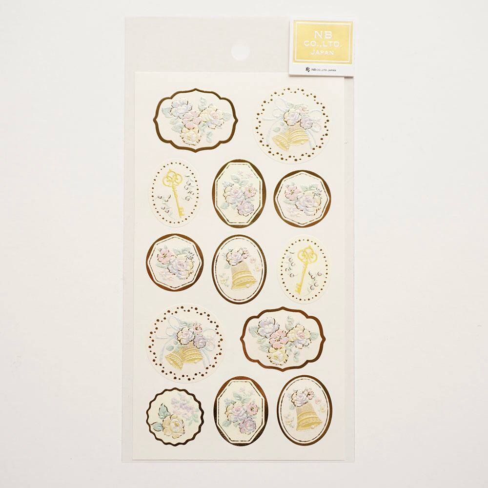 パールと金箔がキラキラ輝き、エンボスで立体感を出した華やかなシールです。
