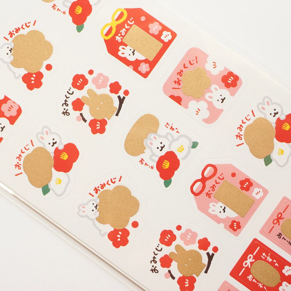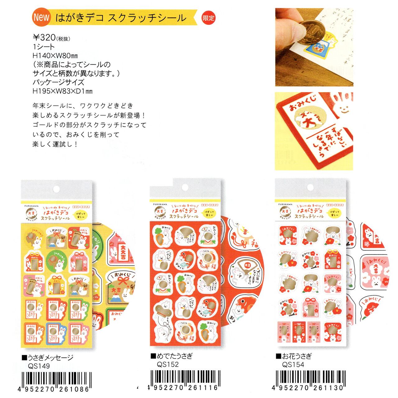 古川紙工 はがきデコスクラッチシール|QS154 お花うさぎ