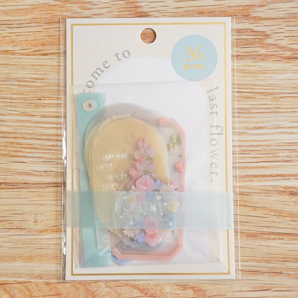 ダイカットのクリアシールとお花の組み合わせがとてもオシャレ。