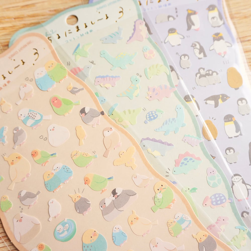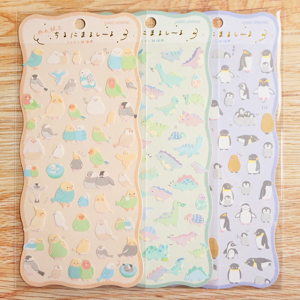 のんびりしたアニマルたちの手ざわりのいいシールです。