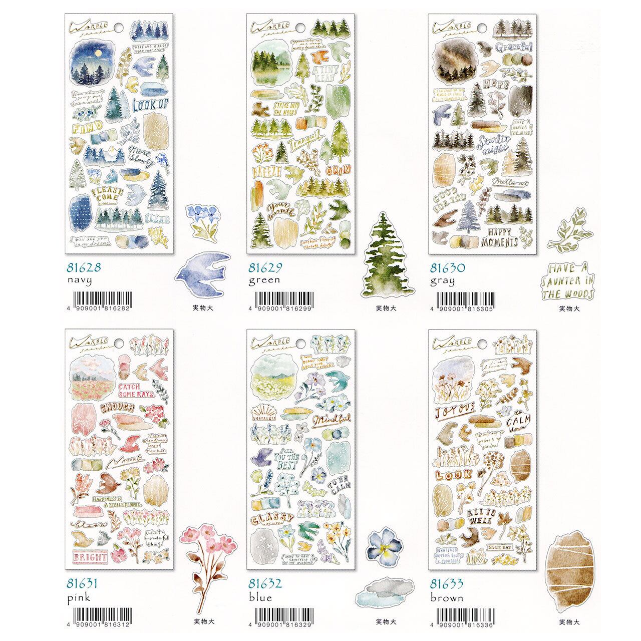 「森」「花畑」をテーマにしたシールが新登場です。透明感がある水彩タッチと絶妙な色のバランスが魅力で、シート一枚でデコレーションが完成するようデザインされています。