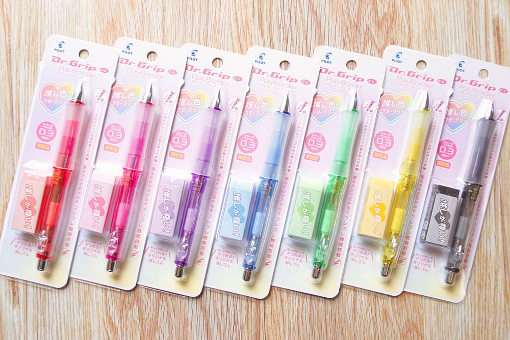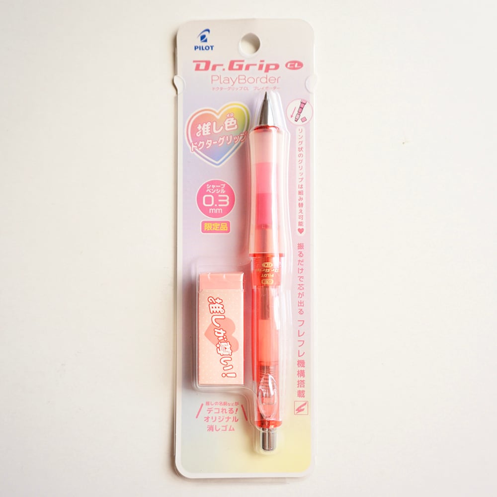限定色のシャープペンシルとカラー消しゴムがセットになった「推し色」テーマのドクターグリップ!中に写真を入れたり、消しゴムをデコったりして推し活を楽しめるシャーペンです!