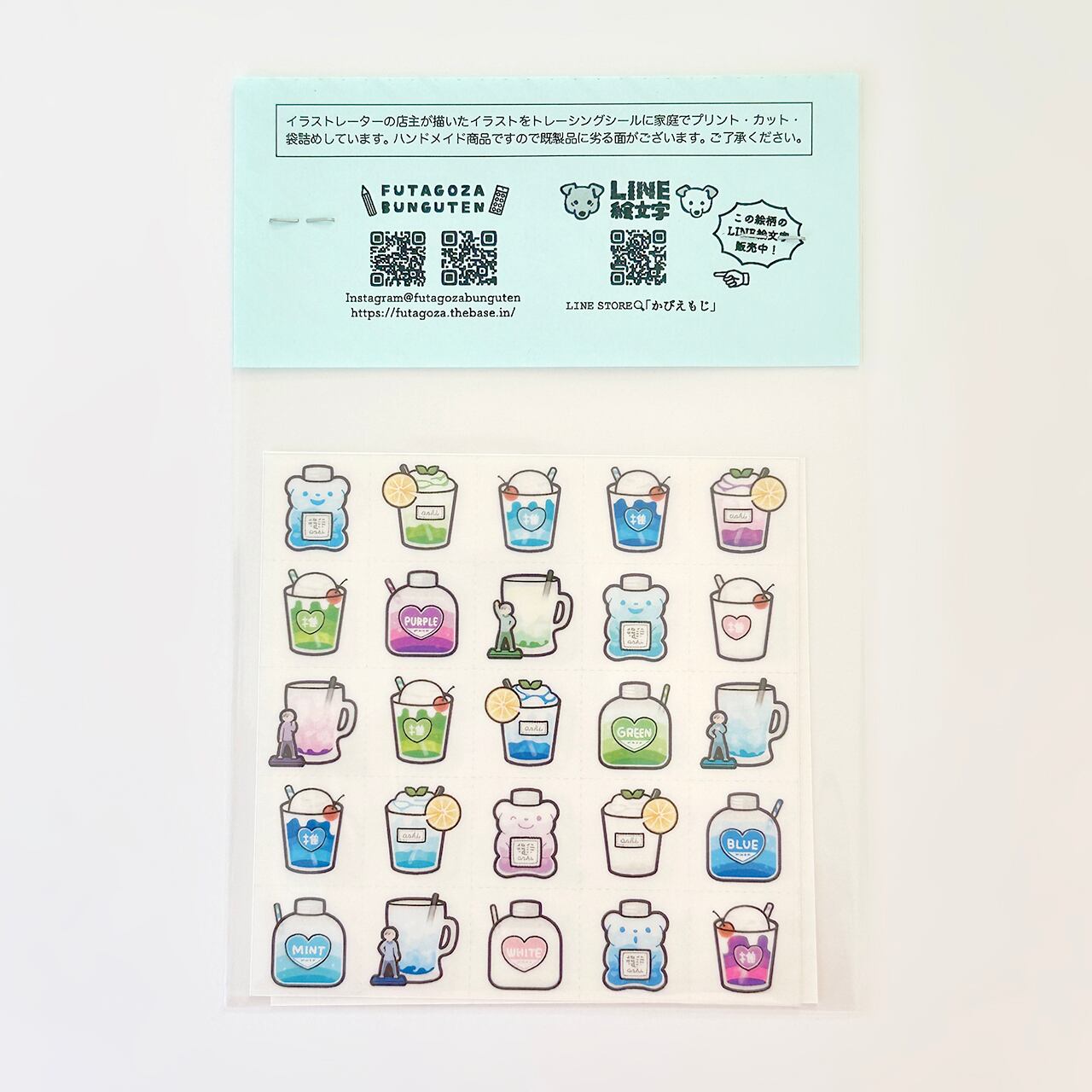 ◾️店主が描いたイラストをトレーシングシールに家庭でプリント・カット・袋詰めしています。ハンドメイド商品ですので既製品に劣る面がございます。ご了承ください。