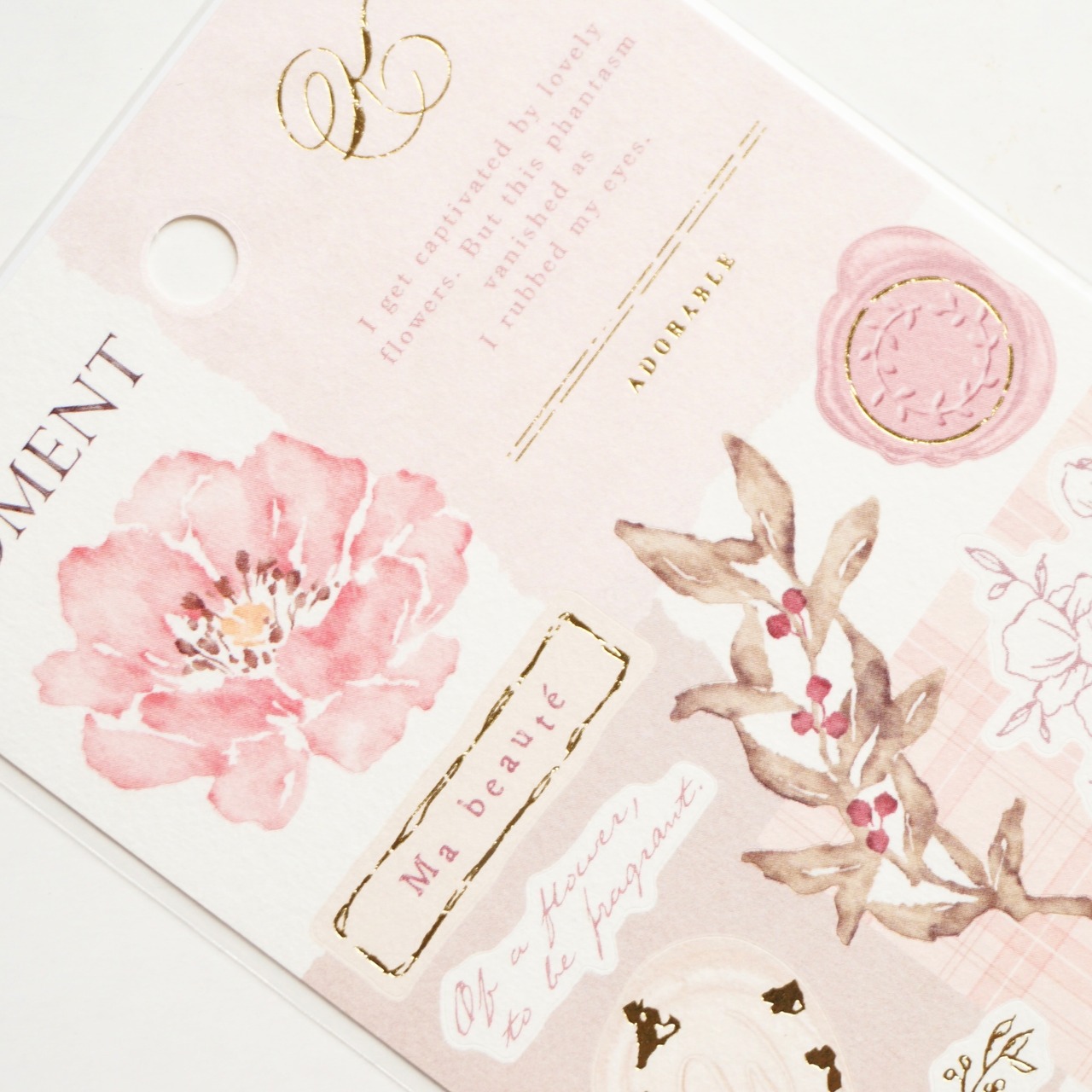 全体的に淡い色合いでまとめており、同シリーズのフレークシールと組み合わせてお使いいただけます。