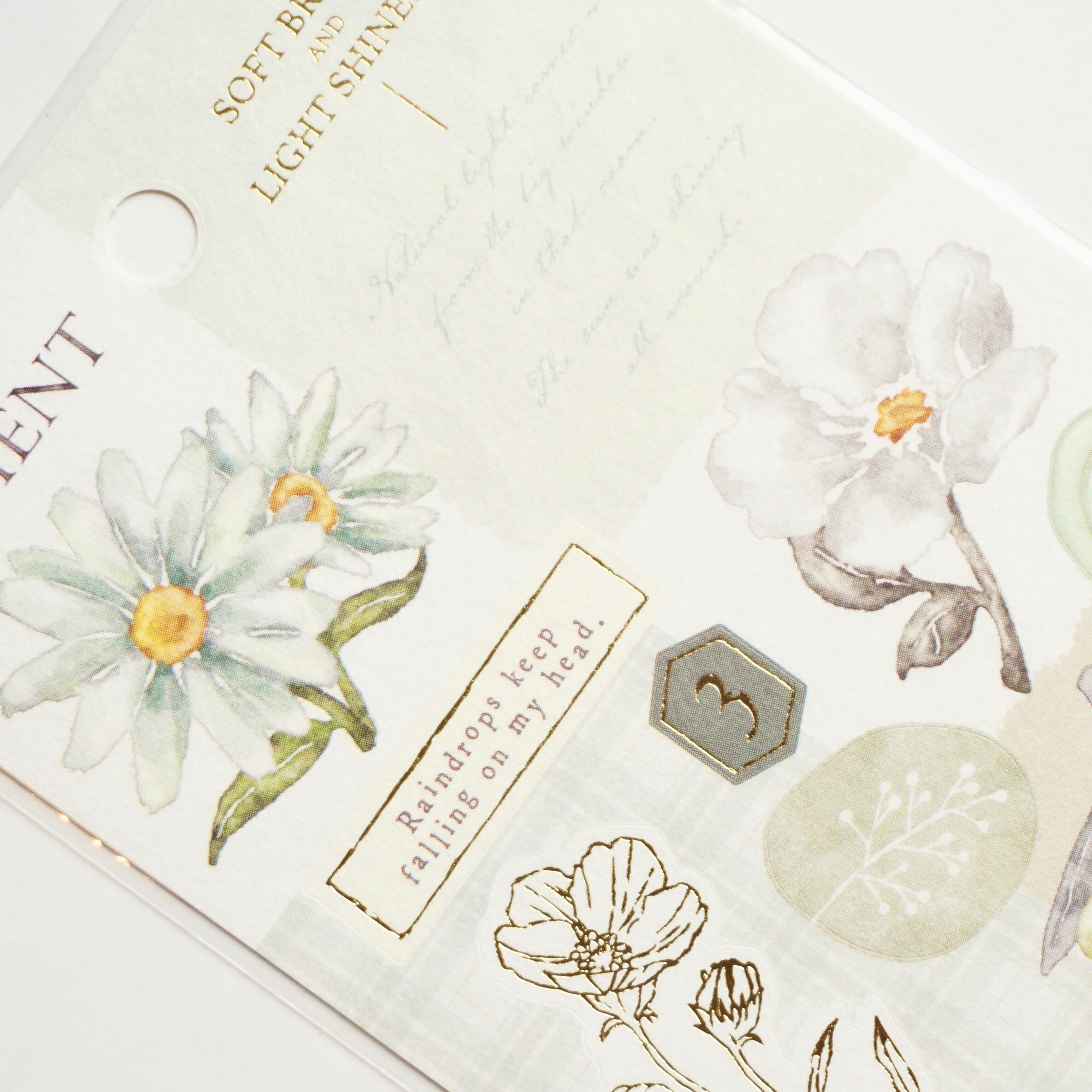 全体的に淡い色合いでまとめており、同シリーズのフレークシールと組み合わせてお使いいただけます。