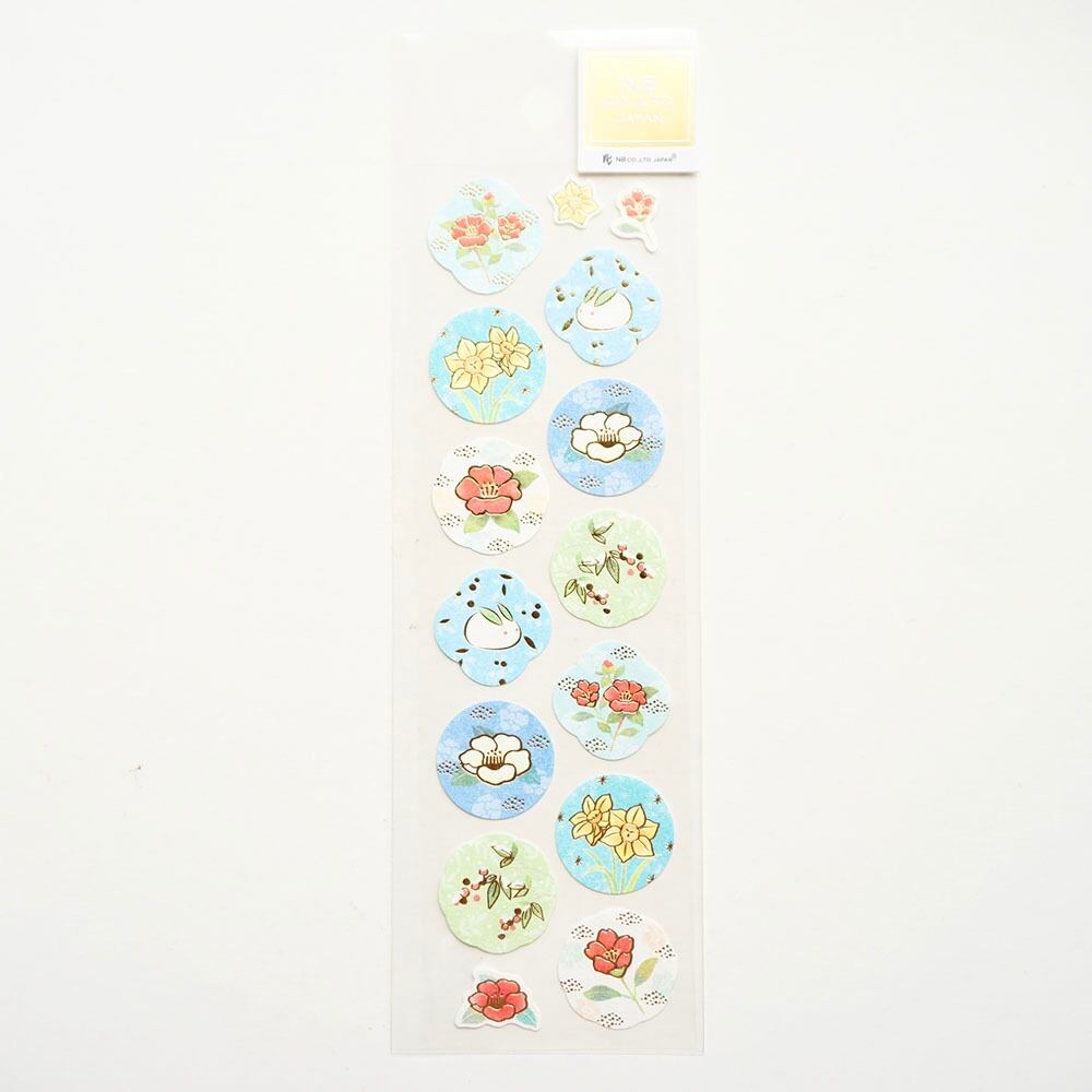 風合いのある紙に金箔が輝く、季節感を楽しめる和風シールです。