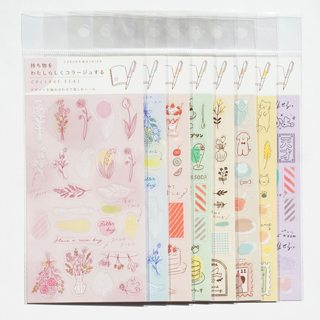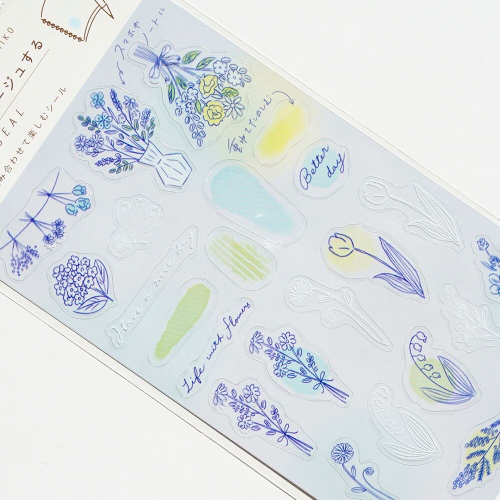 古川紙工 コラージュシール|QS179 ブルーフラワー