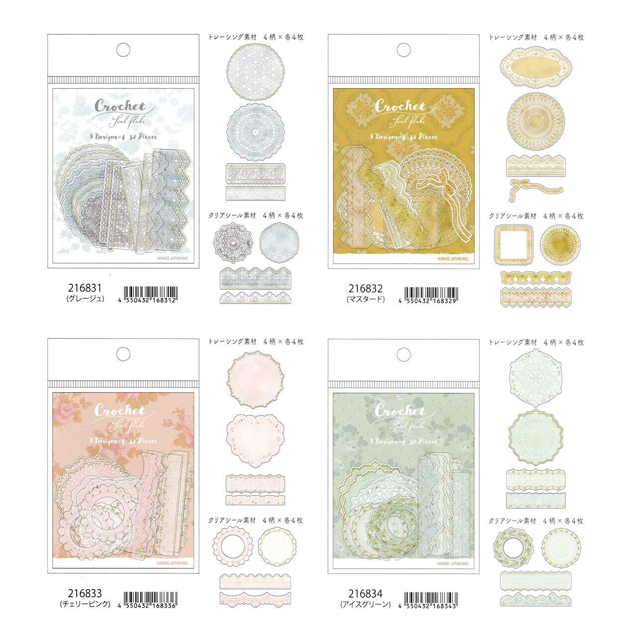 ■内容:クリアシール4柄×各4枚/トレーシングシール4柄×各4枚 計32枚・金箔押し仕様