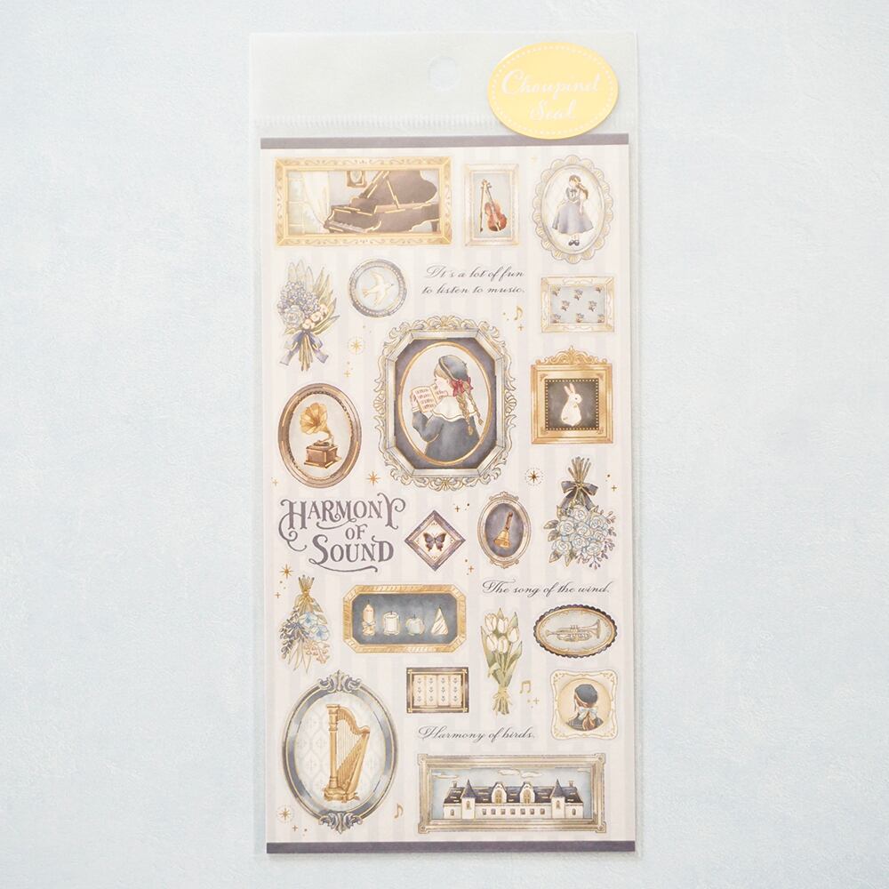 シールには上品な輝きのパール紙を使用し、全面に繊細な金の箔押しを施して仕上げました。