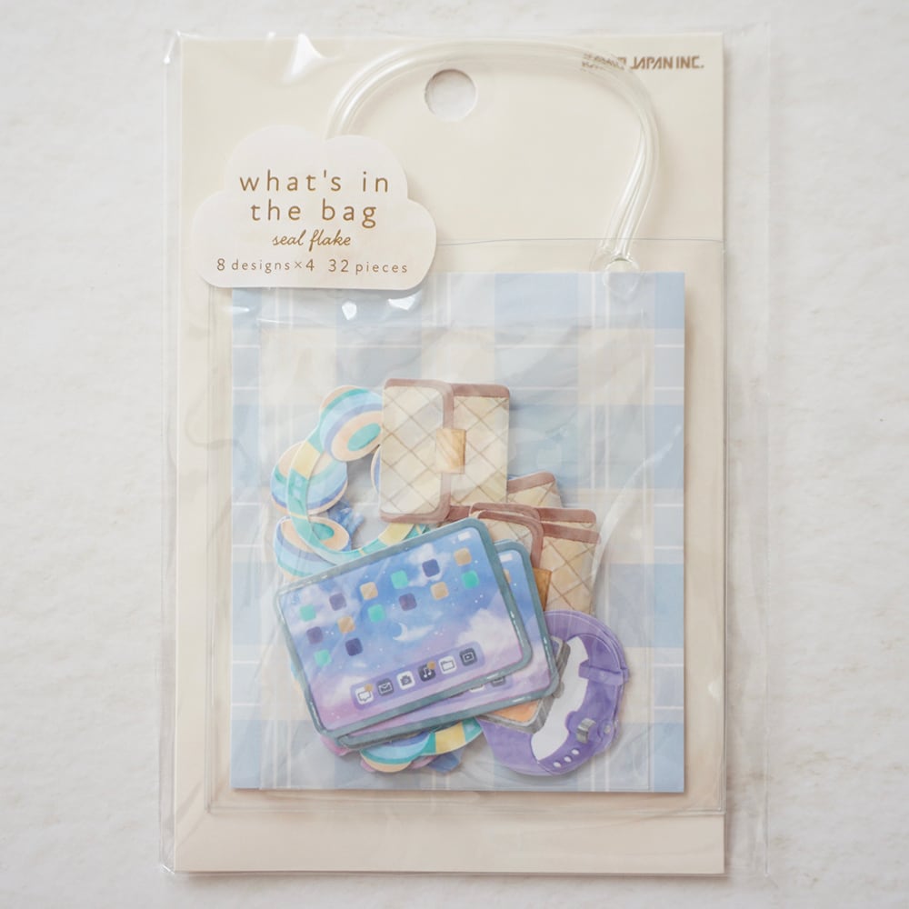 おでかけ先にちなんだ持ち物をバッグに詰めたシールフレーク!